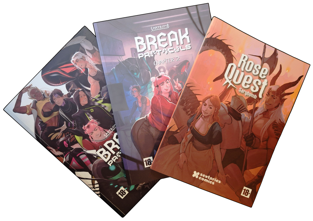 3 physical comics published with Sextories publisher. One of them, Rose quest (2021) appeared in the Ara diary, newspaper from Catalonia, because of its connection to the regional festivity of Sant Jordi’s Day 2025.
