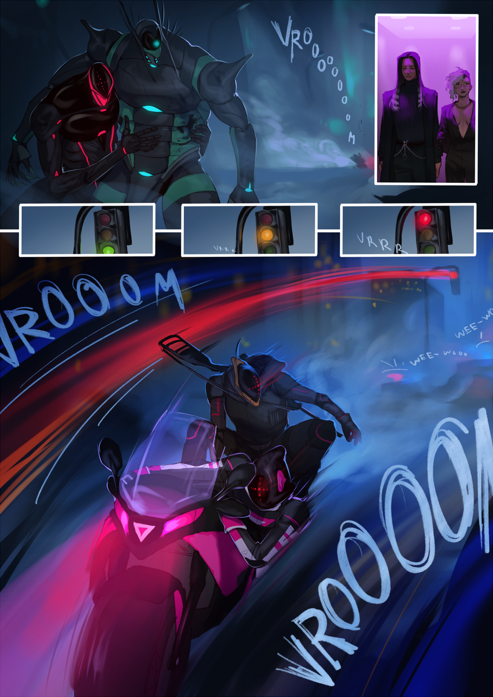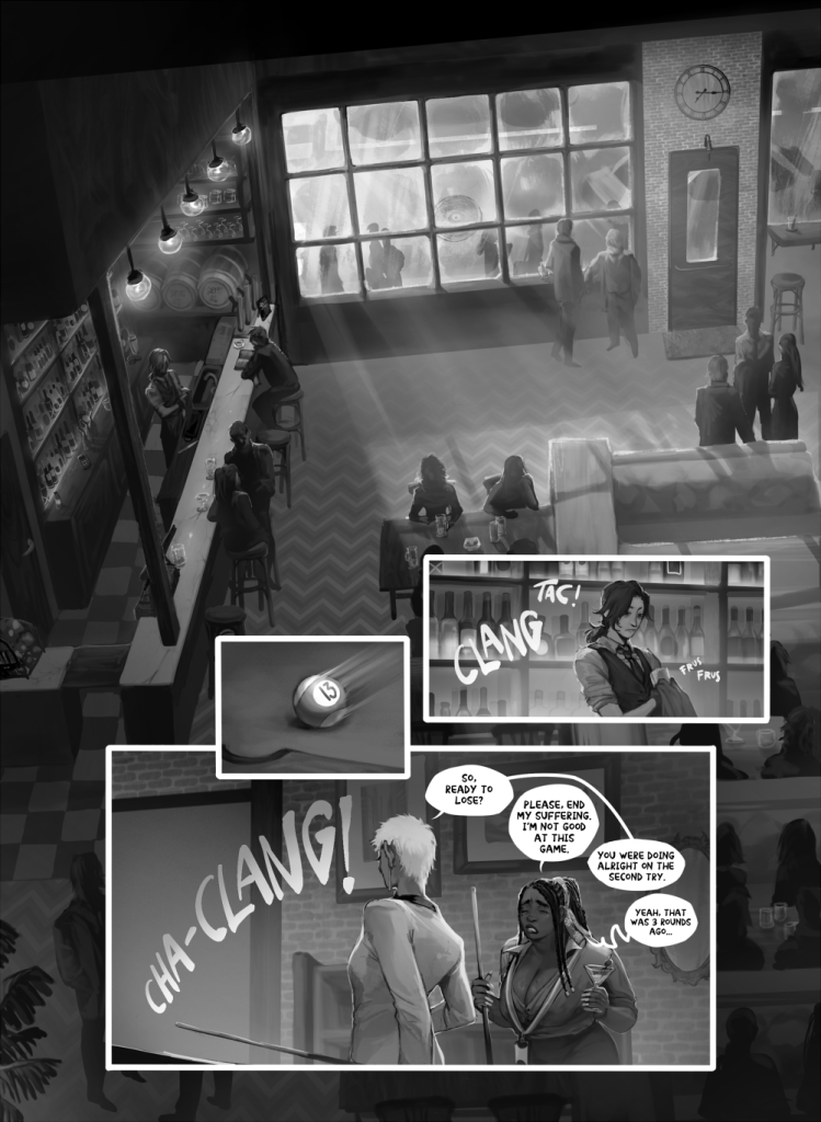 Sequential art has driven me to focus on composition and contrast, as well as improving the way I manage bodies interacting with each other and natural and gesticular anatomy.