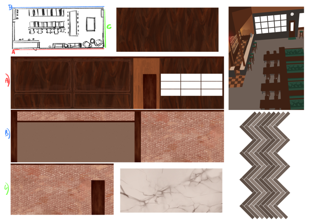 Backgrounds and spaces are some personal favorites of mine to design.